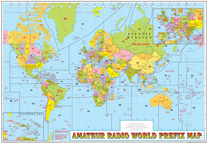 CARTE MONDIALE OM POUR TABLE + PREFIX DXCC (doubleface) - Dim 34x40 cm